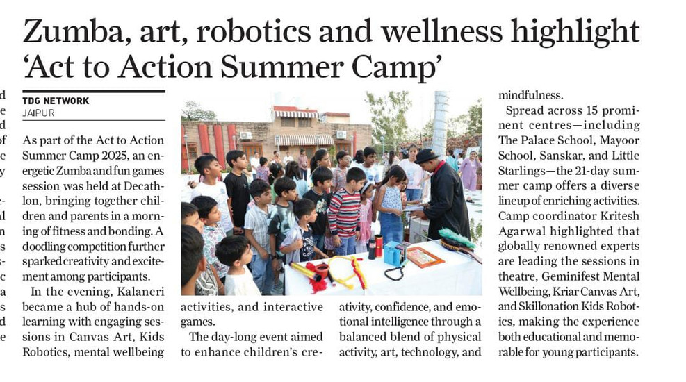 Act to Action द्वारा 25 May से 15 June तक आयोजित जयपुर का सबसे बड़ा समर कैंप जिसमें 3- 15 साल के 500 बच्चे हिस्सा ले रहे हैं।